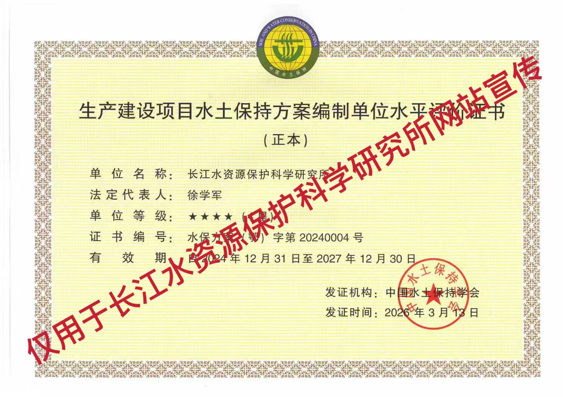 水土保持方案编制单位水平评价证书
