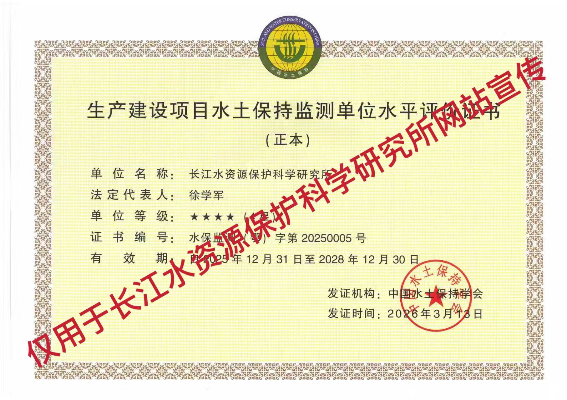 生产建设项目水土保持监测单位水平评价证书