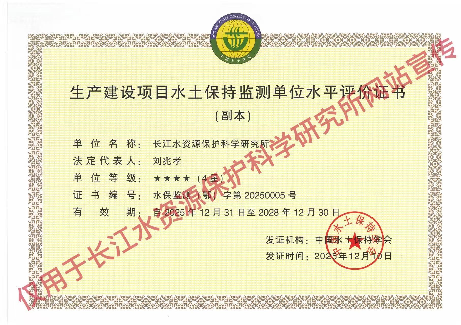 生产建设项目水土保持监测单位水平评价证书