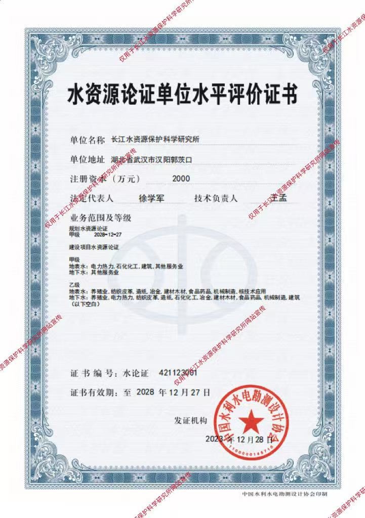 水资源论证资质证书